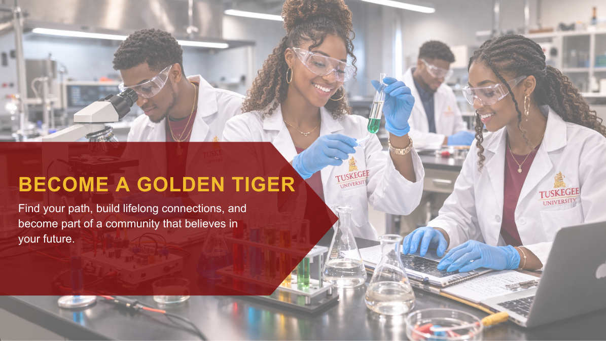 WHO ATTENDS TUSKEGEE UNIVERSITY? Students ready to challenge themselves with talented classmates and top-notch professors on a residential campus known for its rich history and beauty. Students who want to take part in more than 100 clubs and organizations, work with cutting-edge resources and technologies and cheer on some of the nation's most successful sports teams. Tuskegee University is well respected, so our students are sought-after by companies and agencies from around the world! They are great students! WILL YOU BE ONE OF THEM?